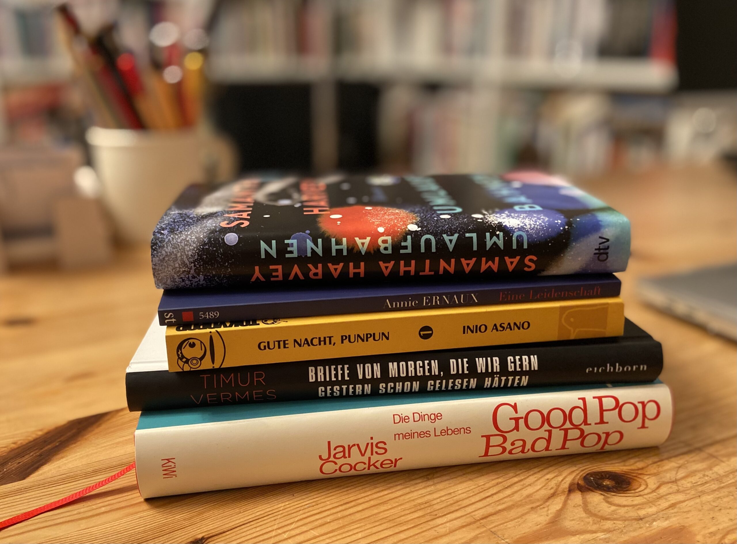 Charis Goer tritt an mit Samantha Harveys Booker-Prize-gekröntem Roman „Umlaufbahnen“, außerdem diskutieren der Kabarettist Ingo Börchers, die Kulturmanagerin Dr. Heike Haase und die beiden Kunsthistorikerinnen Tanja Keck und Dr. Andrea Wandschneider über den Manga „Gute Nacht, Punpun“ von Inio Asano, „Eine Leidenschaft“ von Annie Ernaux, „Good Pop, Bad Pop“ des Pulp-Sängers Jarvis Cocker sowie „Briefe von morgen, die wir gern gestern schon gelesen hätten“ von Timur Vermes.